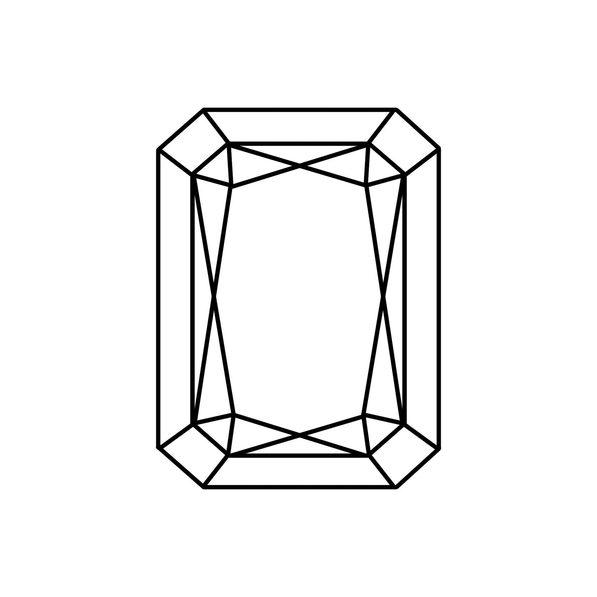 - 正方形や長方形の4つの角を切り落とした形状でブリリアントとステップの混ざったファセット